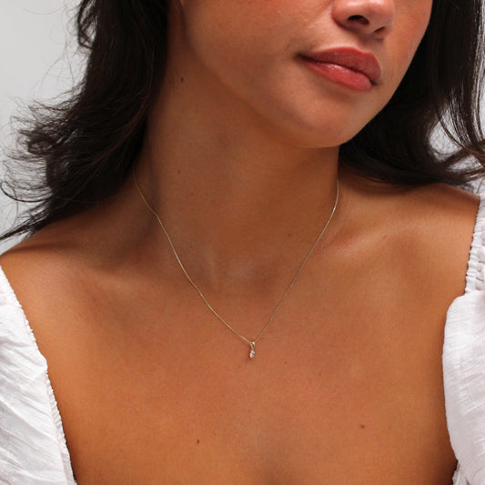 Normaler PreisHalskette aus 9 Karat Gold mit Baguette-Aquamarin und CZ, 16–20 Zoll
