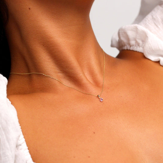 Normaler PreisHalskette aus 9 Karat Gold mit 5 mm runden Krallen-Turmalin CZ, 16-20 Zoll