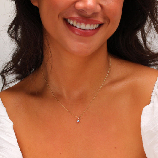 Normaler PreisHalskette aus 9 Karat Gold mit 5 mm rundem klarem CZ in Krappenfassung, 16-20 Zoll