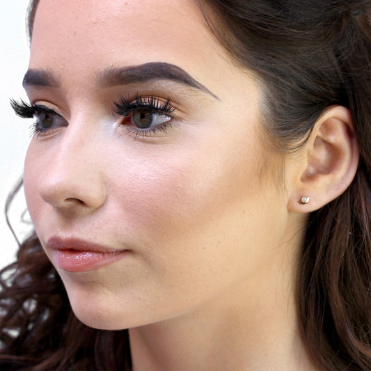 Normaler Preis9 Karat Gold Klar CZ Kristall Minimalismus Halbkreis Ohrstecker