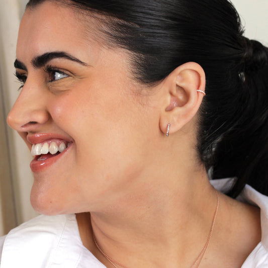 Normaler PreisSterlingsilber Schwarz CZ Pavé Fassung Manschetten Ohrring