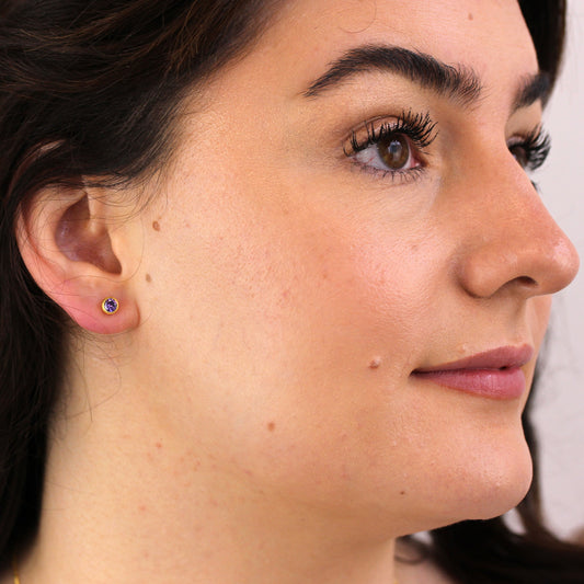 Vergoldet Sterlingsilber Amethyst CZ Klappcreolen Ohrringe & 4mm Ohrstecker Satz