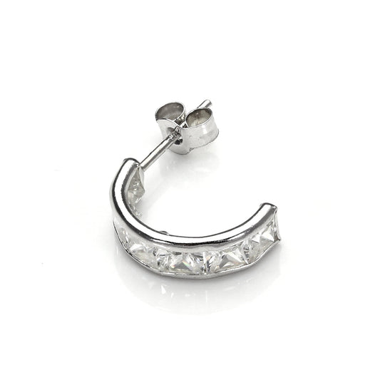 Normaler Preis9 Karat Weißgold Klar CZ Halbkreis Herren Rund Einzel Ohrstecker