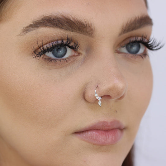 Normaler Preis9 Karat Weißgold Aurora Borealis Opale & Blatt 10mm Nasenring