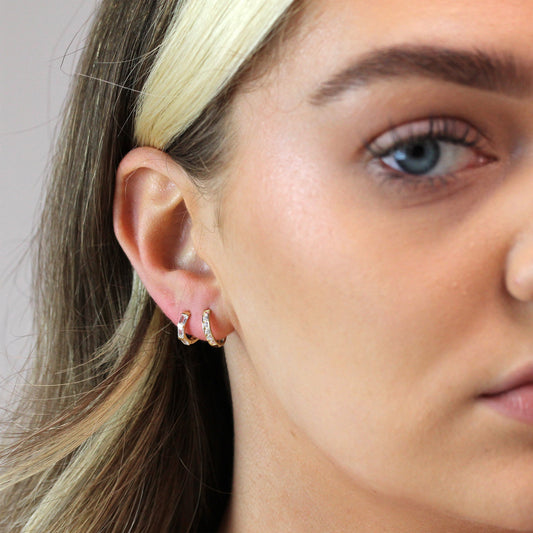 Normaler Preis9 Karat Gold Kanal Fassung CZ 12mm Klappcreolen Ohrringe