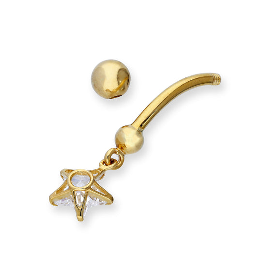 Normaler Preis9 Karat Gold & Hängend Klar CZ Kristall Stern Kugelende Bauchnabelstange