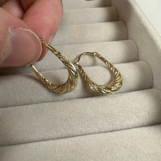 Normaler Preis9 Karat Gold Gedreht Oval Creolen Ohrringe