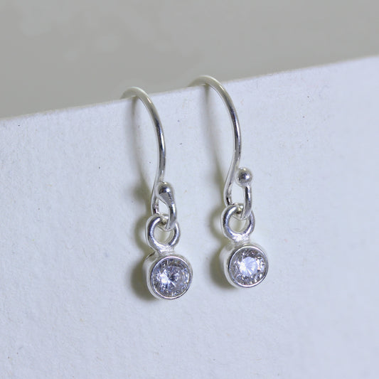 Normaler PreisWinzig Sterlingsilber 3mm Klar CZ Kristall Baumel Ohrringe