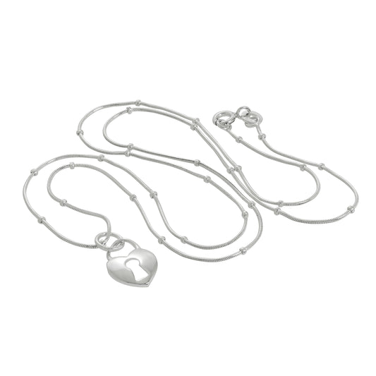 Normaler PreisSterlingsilber Herz Vorhängeschloss Anhänger Halskette 40,5 - 56cm
