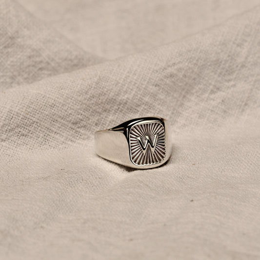 Normaler PreisPersonalised Sterling Silver Square Starburst Initial Signet Ring Size M - Z+1