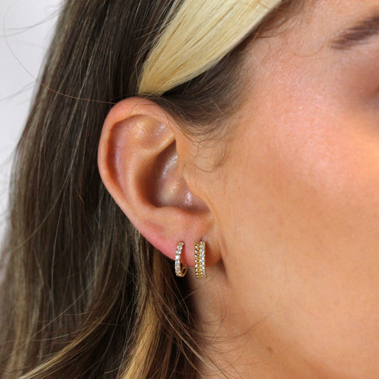 Normaler Preis9 Karat Gold Pompon Kügelchen Pavé Fassung CZ 13mm Klappcreolen Ohrringe