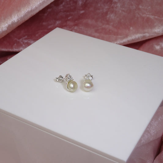 Normaler PreisSterlingsilber Süßwasserperle & CZ Kristall Ohrstecker