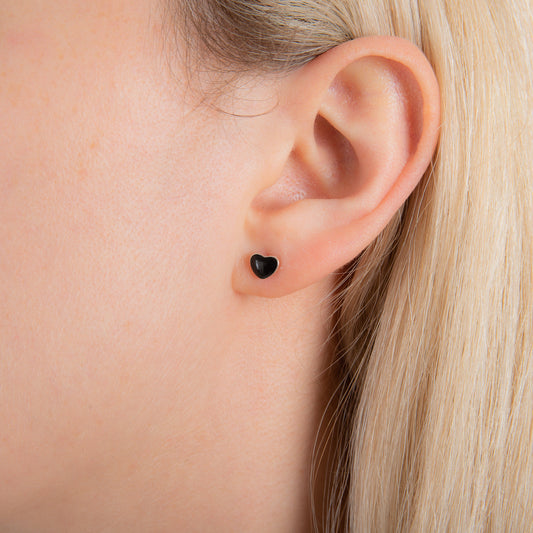 Normaler PreisSterlingsilber Herz Schwarz Emaille Ohrstecker