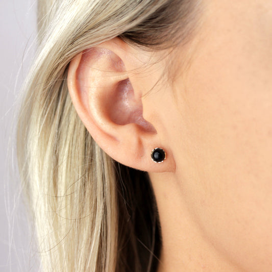 Normaler Preis9 Karat Gold & Onyx 6mm Rund Edelstein Ohrstecker