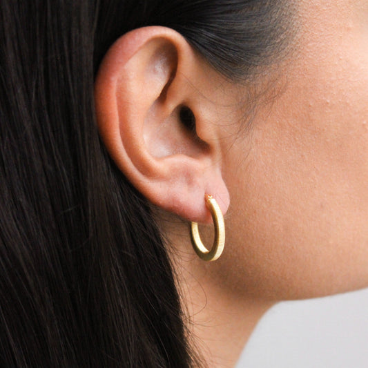 Vergoldet Sterlingsilber Flach Verjüngt Offen Creolen Ohrstecker