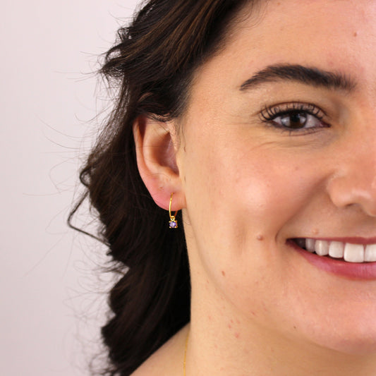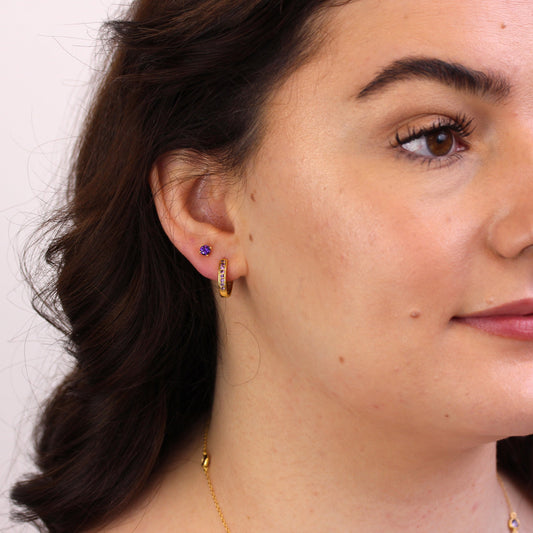 Normaler PreisVergoldet Sterlingsilber Amethyst CZ Klappcreolen Ohrringe & 4mm Ohrstecker Satz