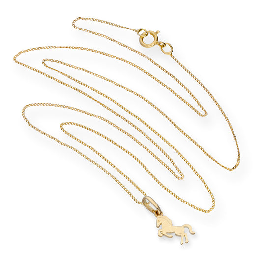Normaler PreisHalskette mit springendem Pferd aus 9 Karat Gold, 16–20 Zoll