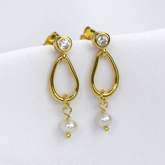 Normaler PreisVergoldet Sterlingsilber Doppelperle Baumel Ohrhänger