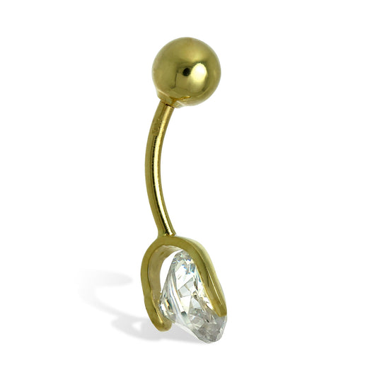 Normaler Preis9 Karat Gold & CZ Kristall Birne Tropfen Bauchnabelstange