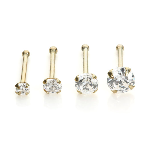 Normaler Preis9 Karat Gelbgold L - Förmig 1,5mm Rund CZ Kristall Klar Nasenstecker