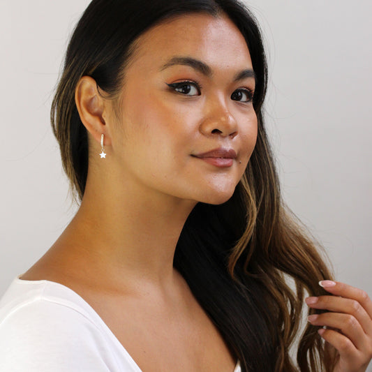 Sterlingsilber CZ Kristall Geburtsstein Stern 10 - 22mm Schläfer Creolen Ohrringe