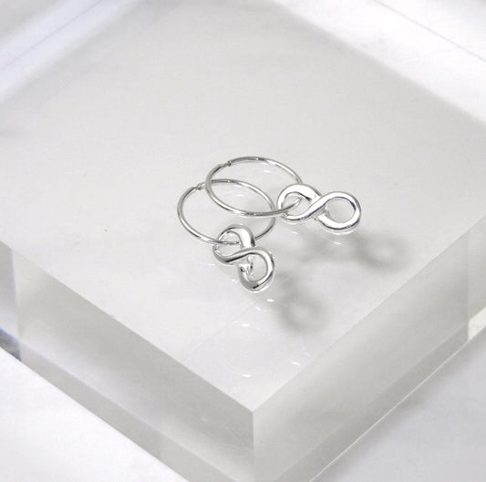 Normaler PreisSterlingsilber Unendlichkeitsschleife Anhänger 12mm Creolen Ohrringe