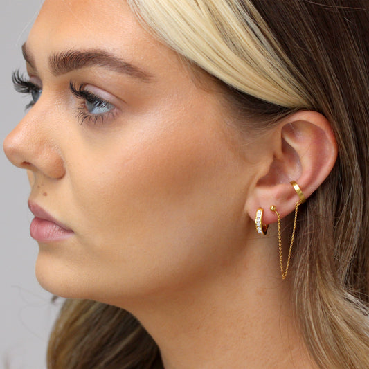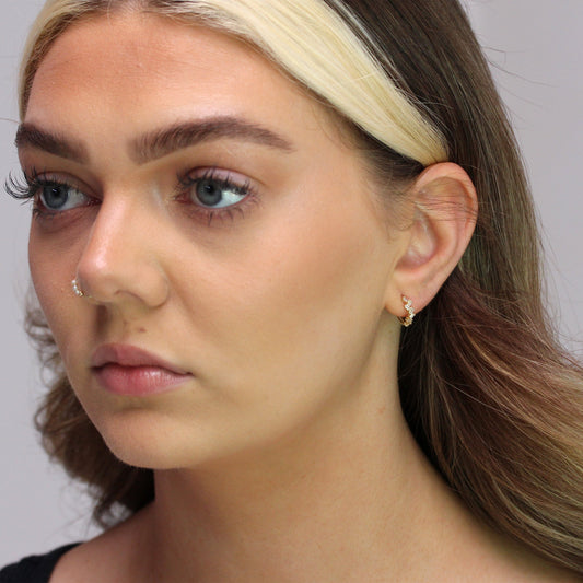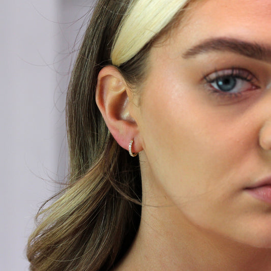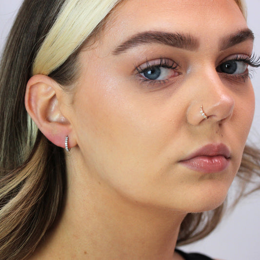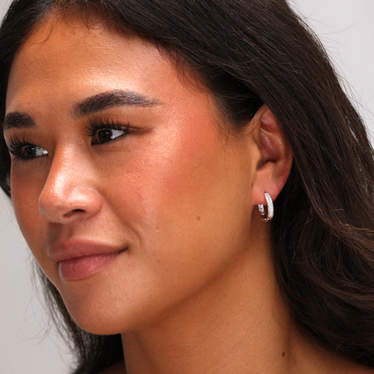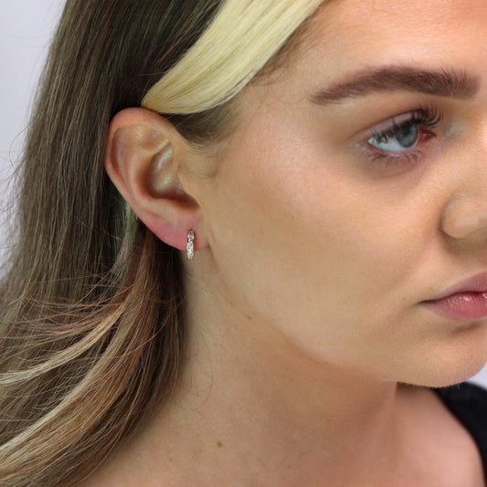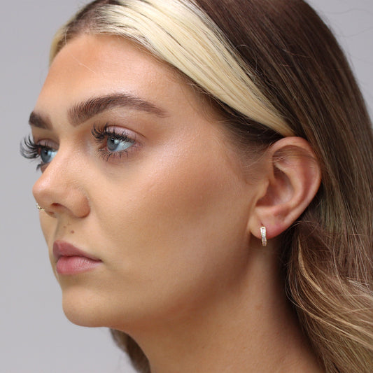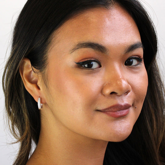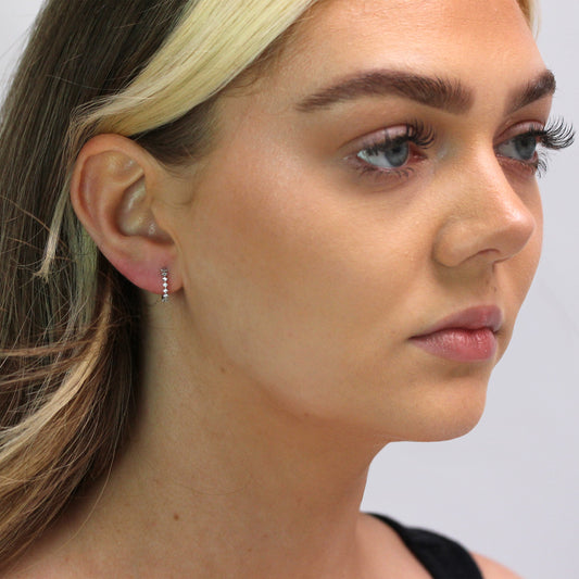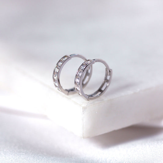 Klein Sterlingsilber CZ Doppel Kanalfassung Klappcreolen Ohrringe
