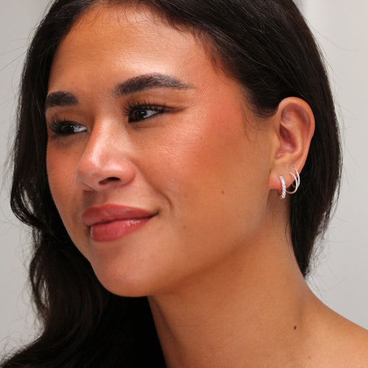 Normaler PreisSterlingsilber CZ Dreifach Ineinandergreifend Klappcreolen Ohrringe