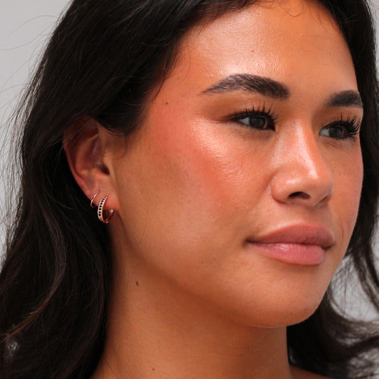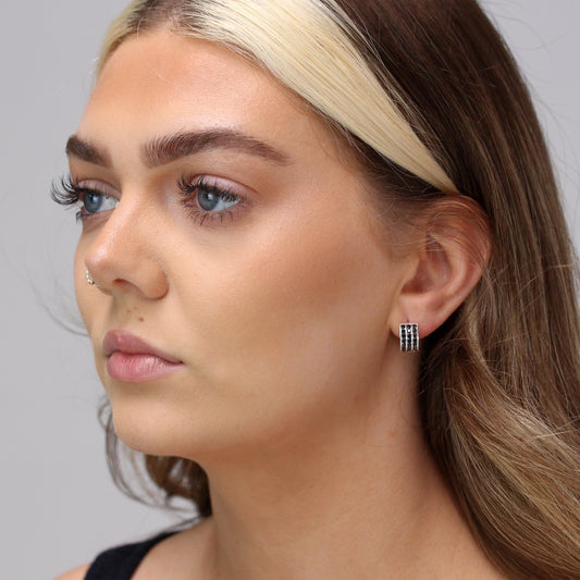 Normaler PreisSterlingsilber Schwarz CZ Dreifach Satz 13mm Klappcreolen Ohrringe