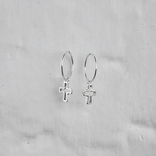 Normaler PreisSterlingsilber Kreuz Kontur Anhänger 12mm Creolen Ohrringe