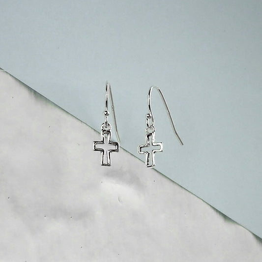Normaler PreisSterlingsilber Kreuz Kontur Fischhaken Ohrringe