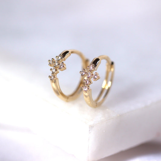 Normaler Preis9 Karat Gold CZ Kreuz 12mm Klappcreolen Ohrringe