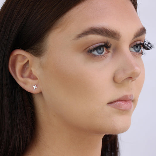 Normaler PreisEinzel Sterlingsilber Klein Kreuz Einzel Ohrstecker