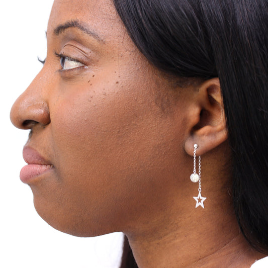 Normaler PreisSterlingsilber Doppelseitig Mattiert Kugel und Ausgeschnitten Stern Baumel Ohrstecker