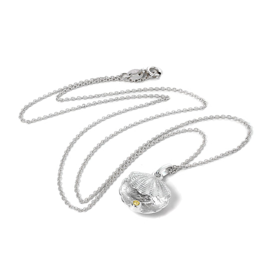 Normaler PreisSterling Silber Austernmuschel mit CZ Kristall Citrin Geburtsstein Halskette