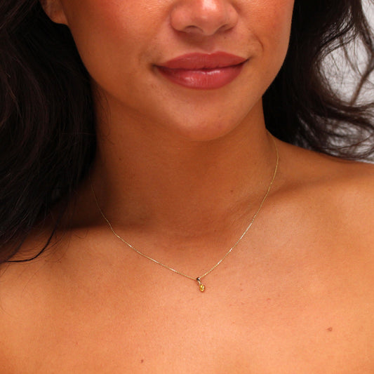 Normaler PreisHalskette aus 9 Karat Gold mit 5 mm rundem Citrin CZ in Krappenfassung, 16-20 Zoll