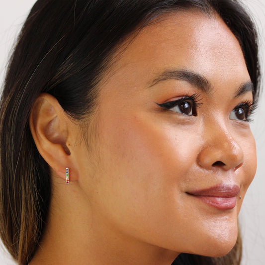Normaler Preis9 Karat Gold & Drei Farbig CZ Kristalle Ohrstecker