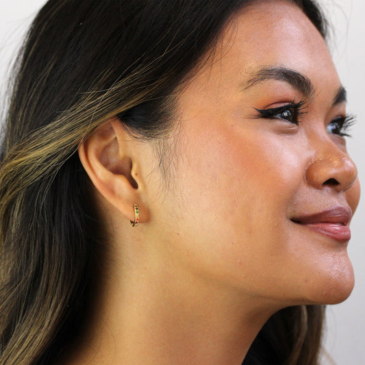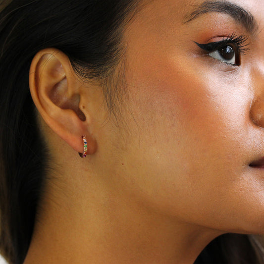 Normaler Preis9 Karat Gold Regenbogen Satz CZ 12mm Klappcreolen Ohrringe