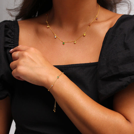 Normaler PreisVergoldete Sterling Silber CZ Rainbow Curve Bar Halskette
