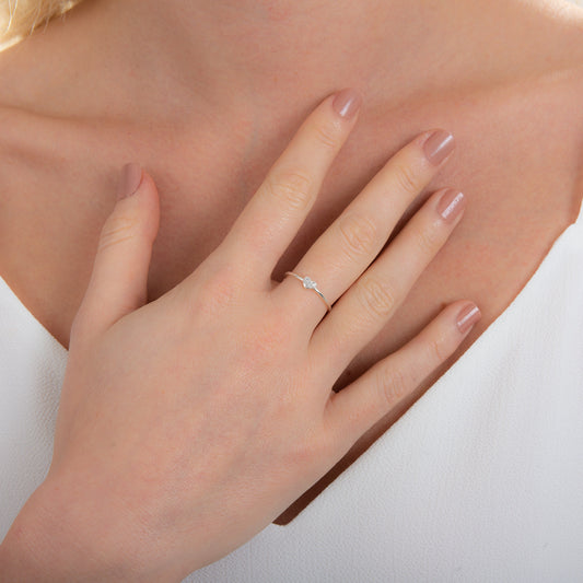 Normaler PreisSterling Silber 1 mm Ring mit CZ Kristall Schleife – Größe J – W