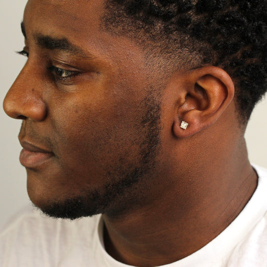 Normaler Preis9 Karat Gelbgold Klar CZ 5mm Quadrat Herren Einzel Ohrstecker