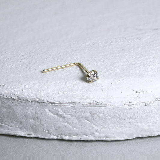 Normaler PreisL-förmiger 1,5 mm runder CZ-Kristall Nasenstecker aus 9ct Gelbgold