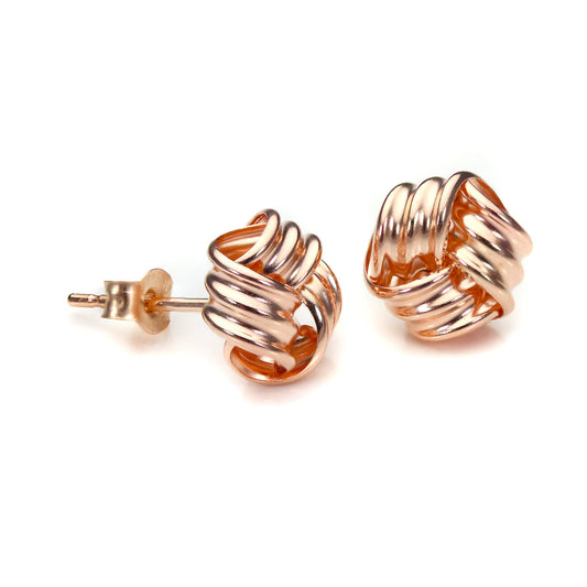 Shop NowRoségold-beschichtete Sterling-Silber-Ohrstecker mit Knoten und Perle