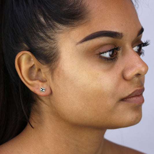 Normaler Preis9 Karat Gold Schwarz Emaille & Klar CZ Kristall Katzengesicht Ohrstecker