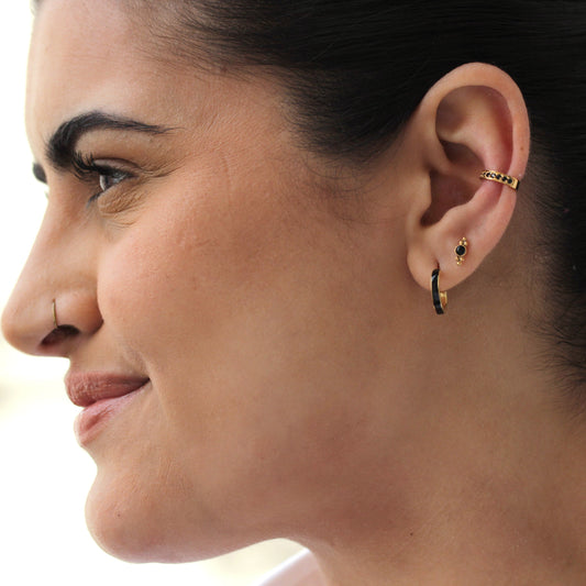 9 Karat Gold & Schwarz Emaille Zweiton Dreieck Ohrstecker
