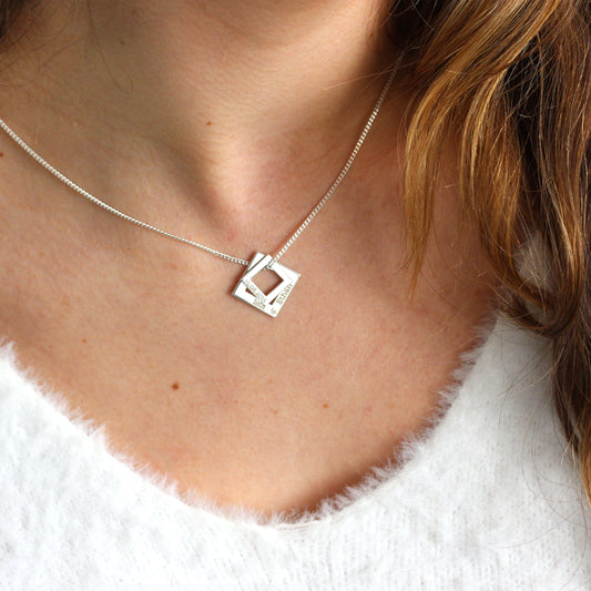 Normaler PreisPersonalisierte Halskette aus Sterlingsilber mit Familiennamen in quadratischer Form