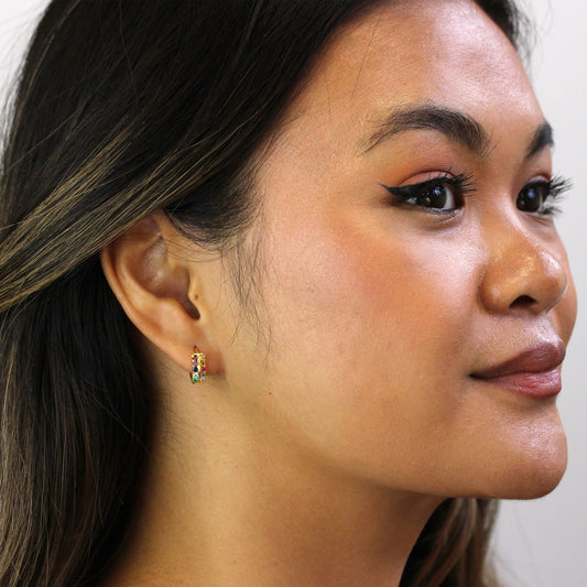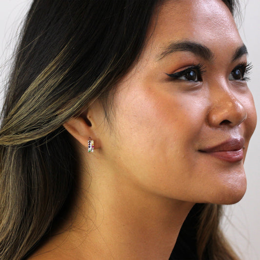 Normaler PreisVergoldet Sterlingsilber Doppel Kanal Fassung Regenbogen CZ 12mm Creolen Ohrringe