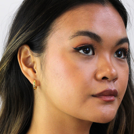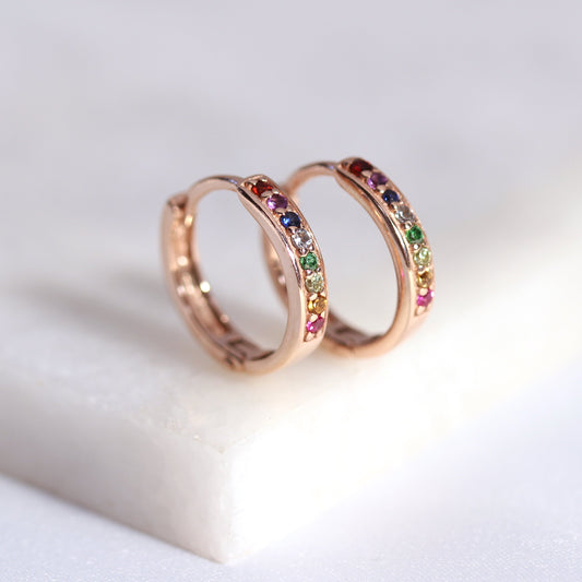 Normaler Preis9 Karat Gold Regenbogen CZ 5mm Karma Kreis Ohrstecker