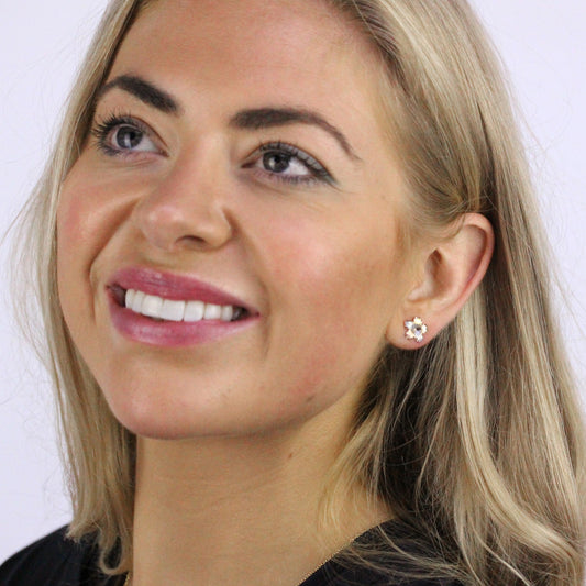 Normaler Preis9 Karat Gold & Klar CZ Kristall Offen Blume Ohrstecker