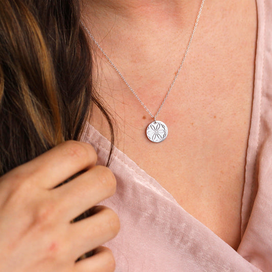 Normaler PreisSterling Silver February Violet Birth Flower & 13mm Engravable Tag Necklace 14 - 22 Inches